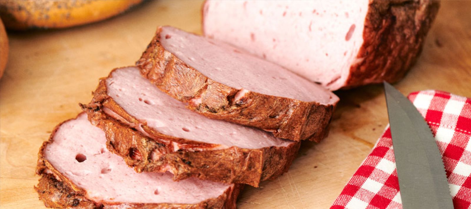 Wo findet man noch Leberkäs wie diesen? Unser sanfter Fleischkäse schmeckt mit seinem weichem Brät herzhaft-lecker und deftig mit einer Gewürznote aus Muskatblüte, Koriander, Paprika, Kümmel und Pfeffer. Wir bieten diese Delikatesse nicht nur im Großhandel an, sondern auch unseren Privat- und Geschäftskunden auf dem Buffet oder im Regiomat vor unserer Manufaktur. Warmer Leberkäse schmeckt am besten mit Bratkartoffeln, Kartoffelstampf oder frischer Laugenbrezel und einem wohlportionierten Klecks süßem Senf.